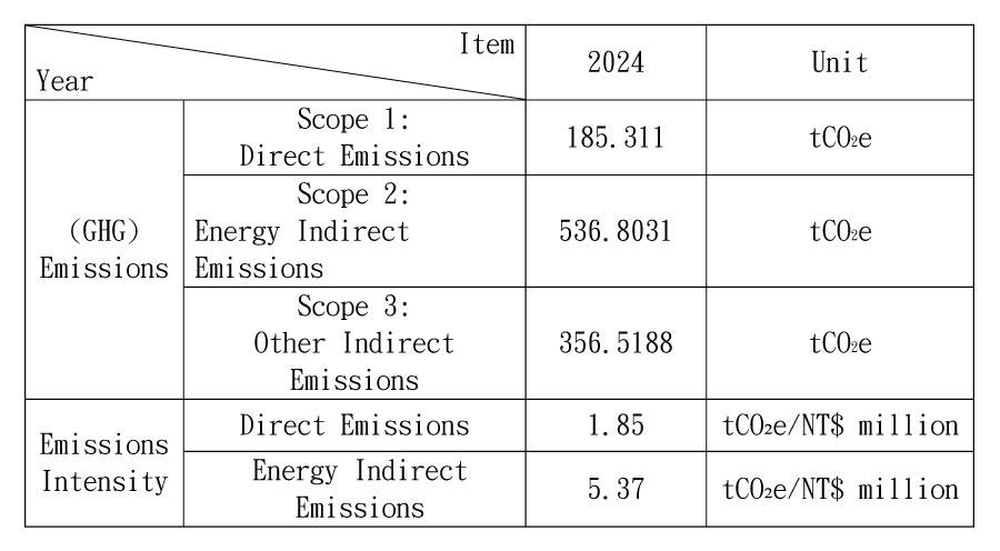 In light of our concern for global climate change, prudent resource use, and corporate responsibility, and in accordance with ISO 14064-1:2018, the Company has launched initiatives to conduct a systematic greenhouse gas (GHG) emissions inventory, establish registers, and implement verification procedures. These efforts consider trends in GHG regulation and future reduction requirements, providing a basis for the effective reduction and improvement measures to be implemented subsequently.